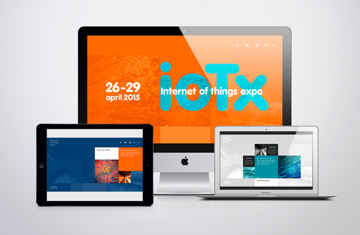 Logo and brand design for the Internet of things expo, an event designed to showcase and discuss new technology. All branding was created for the event, from logo through to digital, brochures to outdoor advertising.
