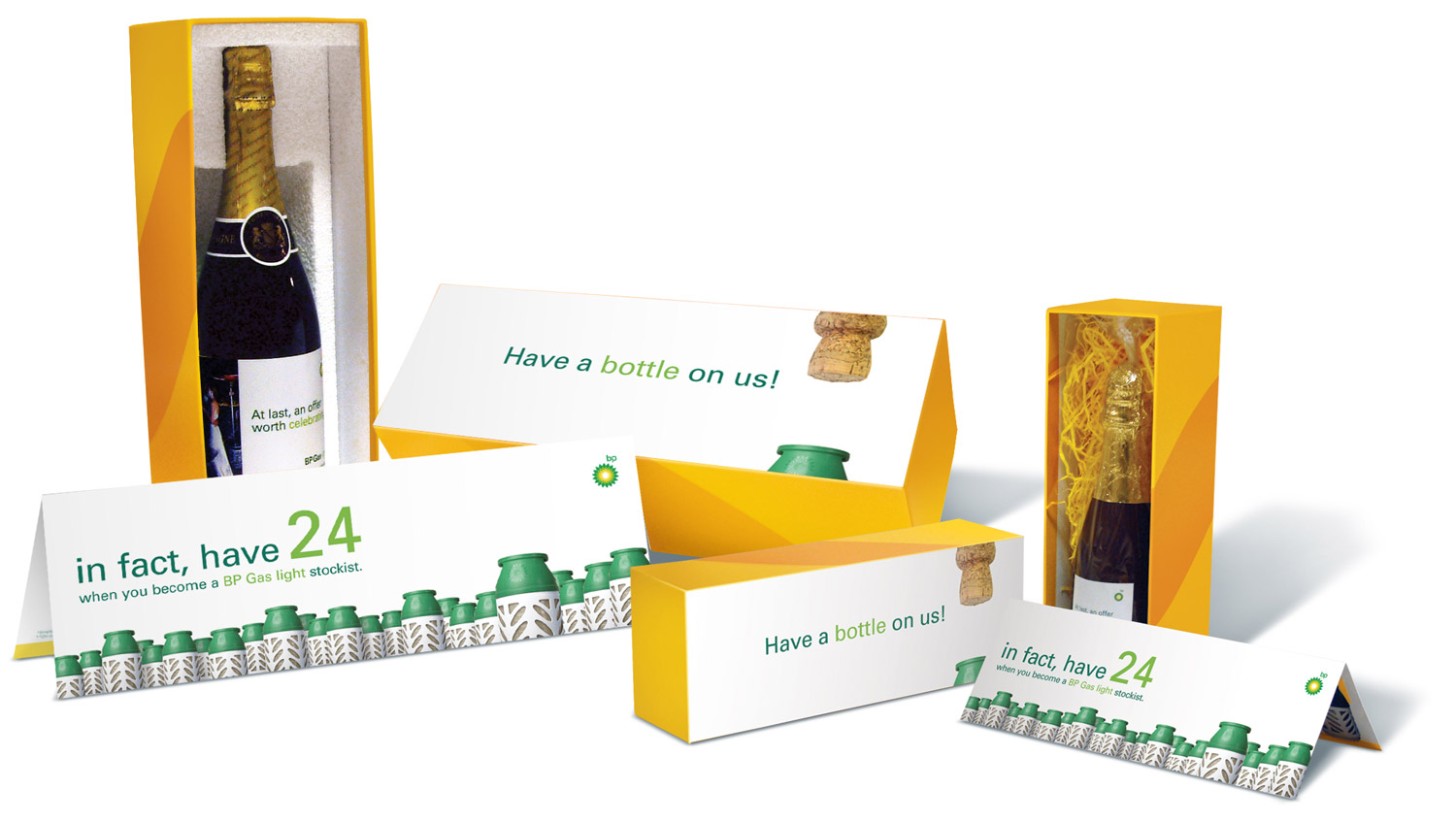 As part of a drive to promote BP Gas Light, a proposal was created for the shown promotional gift and card, sent to prospective buyers and suppliers.