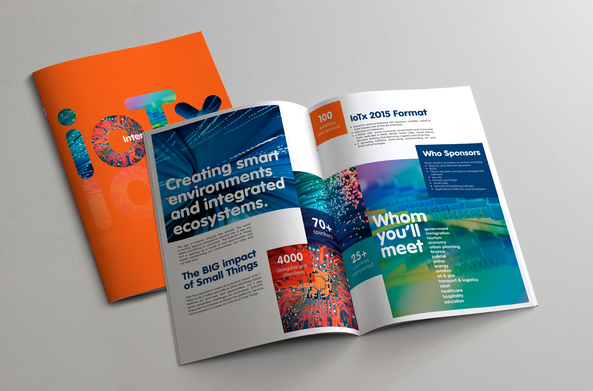 Logo and brand design for the Internet of things expo, an event designed to showcase and discuss new technology. All branding was created for the event, from logo through to digital, brochures to outdoor advertising.